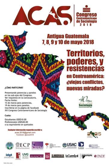 Convocatoria para participar del XVI Congreso Centroamericano de Sociología ACAS Territorios, poderes y resistencias en Centroamérica: ¿Viejos conflictos, nuevas miradas?