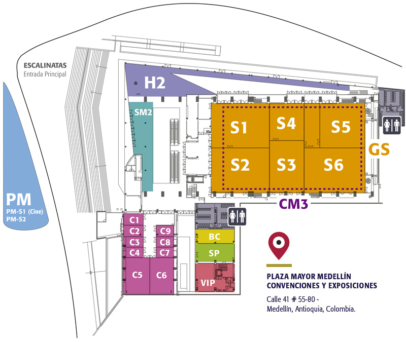 S1. Salón 1 | S2. Salón 2 | S3. Salón 3 | S4. Salón 4 | S5. Salón 5 | S6. Salón 6 |