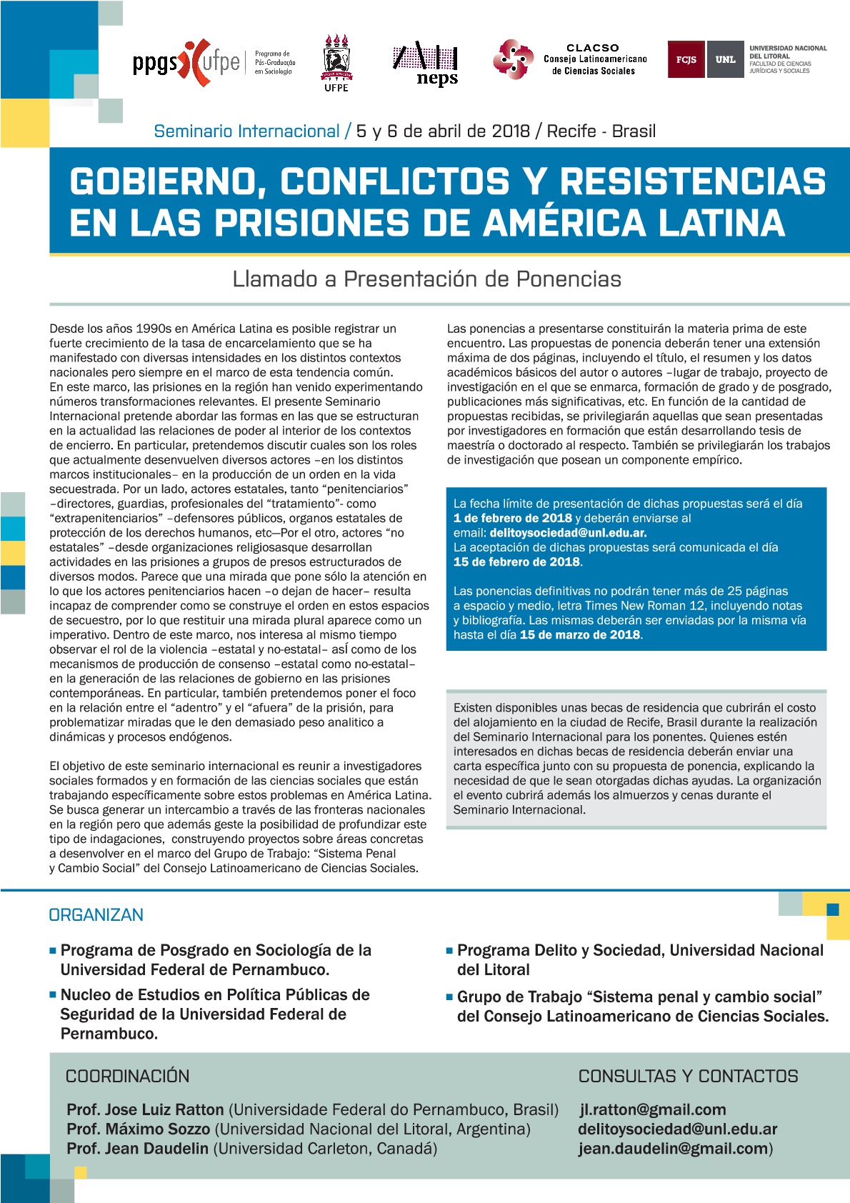Convocatoria para presentar trabajos en el Seminario Internacional: Gobierno, conflictos y resistencias en las prisiones de América Latina