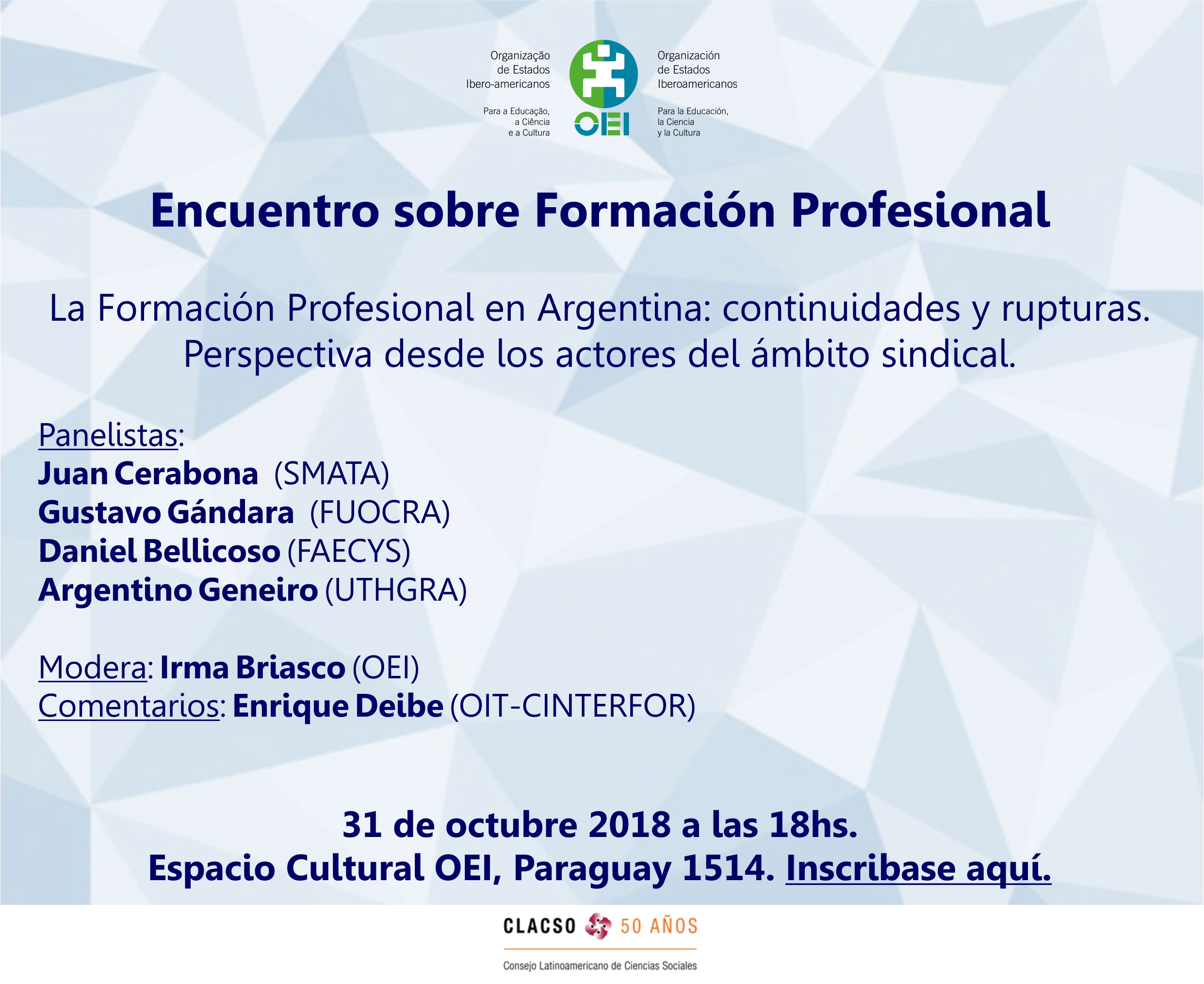 Encuentro sobre formación profesional "La formación profesional en Argentina: continuidades y rupturas. Perspectiva desde los actores del ámbito sindical"