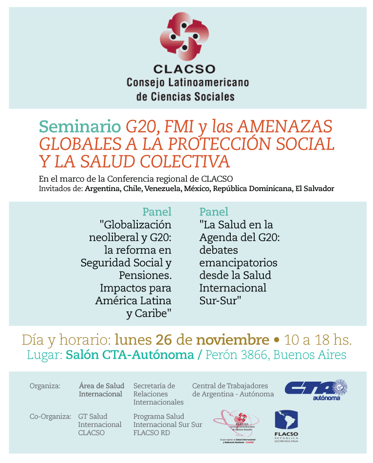 ARGENTINA - SEMINARIO "G20: AMENAZA GLOBAL A LA SALUD COLECTIVA Y LA PROTECCIÓN SOCIAL"